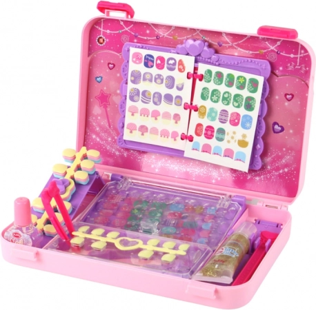 Cette adorable valisette rose avec un noeud violet pailleté est plus qu’un jouet – c’est un petit studio créatif pour apprenties stylistes. À l’ouverture, les enfants découvriront un large choix d’accessoires pour créer une manucure originale et ravissante selon leur imagination.