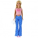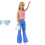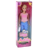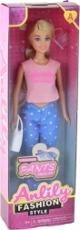 La poupée stylée ANLILY aux longs cheveux blonds est vêtue d’un top rose, d’un pantalon bleu à étoiles et de baskets roses. Sont inclus un sac à main blanc et des lunettes bleues pour un stylisme créatif. Taille de la poupée 30 × 7 × 5 cm, emballage 32 × 11 × 5 cm. Certification CE, norme EN71, convient dès 3 ans.