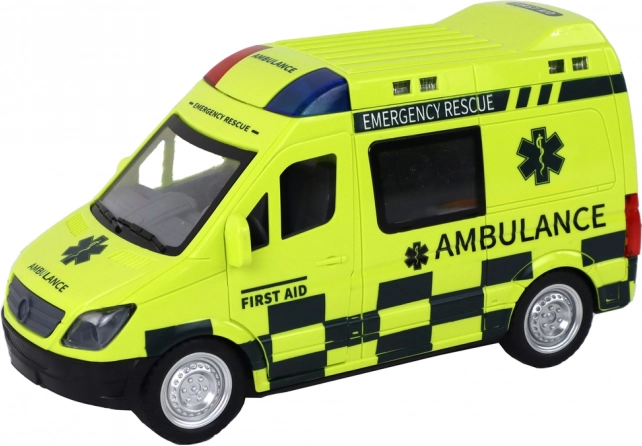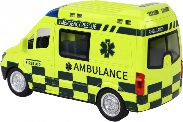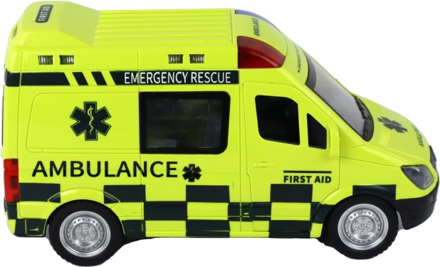 L’ambulance est conçue pour reproduire fidèlement les véritables véhicules de secours, y compris les roues détaillées, les fenêtres et les inscriptions.
