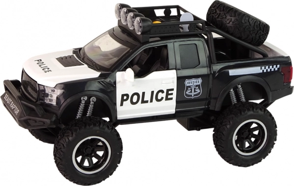 Véhicule de police tout-terrain Raptor noir, portes ouvrantes, feux et sons