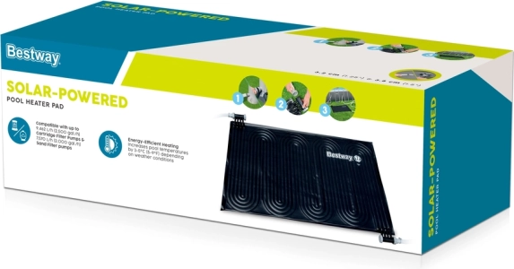 Arrêtez de gaspiller de l'énergie pour chauffer l'eau de la piscine. Le panneau solaire Bestway vous épargne des soucis, du temps et de l'argent. Il suffit de le connecter à votre système de filtration et le soleil fera le reste. Ce panneau chauffe non seulement considérablement l'eau, mais il est aussi écologique et économique.