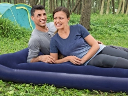 La structure interne coil-beam répartit le poids uniformément et évite l’affaissement, de sorte que le matelas reste stable même en mouvement. Grâce à la pompe à pied, vous pouvez le gonfler facilement sans électricité, et la valve verrouillable à double sens permet un gonflage et un dégonflage rapides. Idéal sous la tente, au chalet ou comme lit d’appoint confortable pour les invités.
