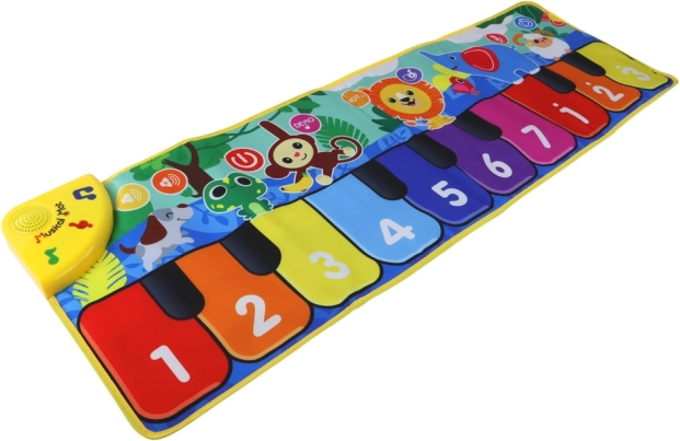 Le tapis est équipé d'une fonctionnalité de réglage du volume et d'option de mise en sourdine, ce qui est apprécié dans de nombreuses situations. Les touches interactives donnent aux enfants la possibilité de créer leur propre musique et la fonction d'enregistrement sauvegarde facilement leurs expériences mélodiques.