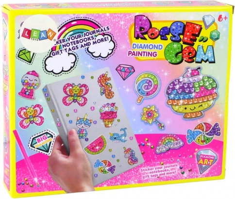 Avec ce kit de diamond painting, les enfants créent facilement des autocollants scintillants sur le thème des gourmandises. À l’aide d’un stylet spécial et de strass colorés, ils remplissent les formes préimprimées pour réaliser en un rien de temps des décorations originales pour cahiers, sacs à dos et trousses.