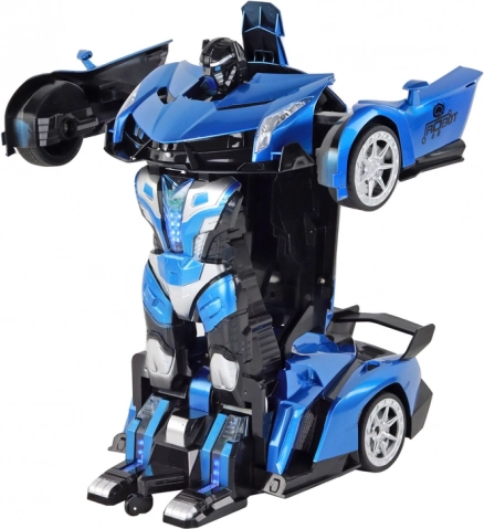 Découvrez la voiture robotique radiocommandée au format 1:10 dans une élégante couleur bleue – elle combine l’excellence d’une voiture de sport avec une fascinante fonction de transformation en robot. Son design soigné, riche en détails, reflète le caractère réaliste d’un véritable bolide.