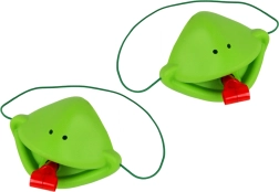 Pour préparer la partie, il faut assembler les masques (pour obtenir le visage souriant du caméléon, on fixe les élastiques et on déplie les langues-tranpettes). On plie aussi les cartes vertes (rouges au verso) afin de pouvoir les poser verticalement.