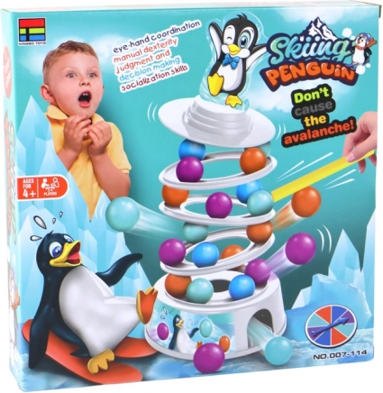Exercez votre patience, votre adresse et votre réflexe avec un jeu familial joyeux où des billes glissent le long d’une tour de glace avec un pingouin. Le but est d’insérer dans la tour des billes de la couleur tirée au sort tout en évitant de la renverser – celui qui fait tomber le pingouin perd. Une super activité pour enfants et adultes, sans piles.