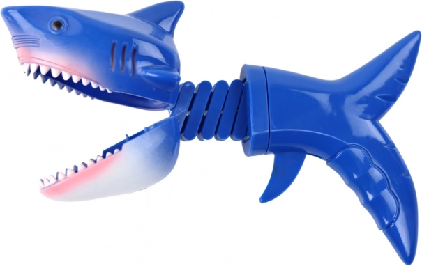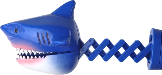 La tête du requin à ressort se ferme rapidement lorsqu’on presse la gâchette, créant un effet de morsure spectaculaire qui amuse les enfants encore et encore.