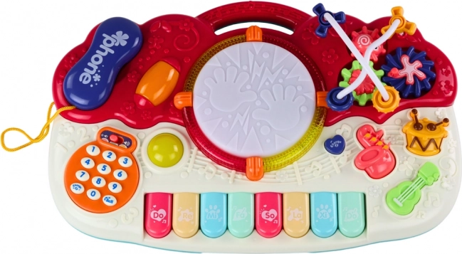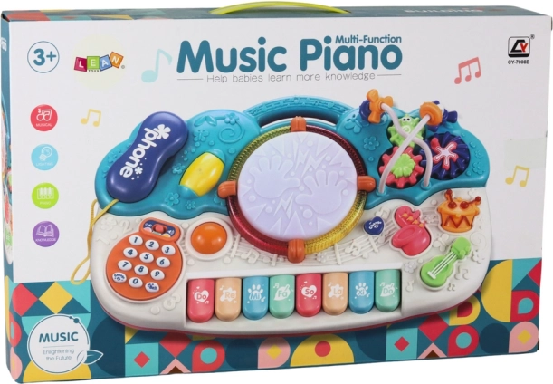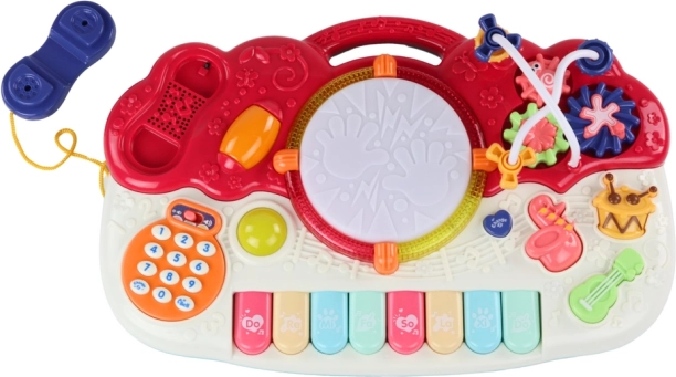 Comprend un clavier, un tambour, un téléphone intégré et diverses fonctions sonores et lumineuses pour développer la conscience musicale des enfants.