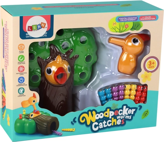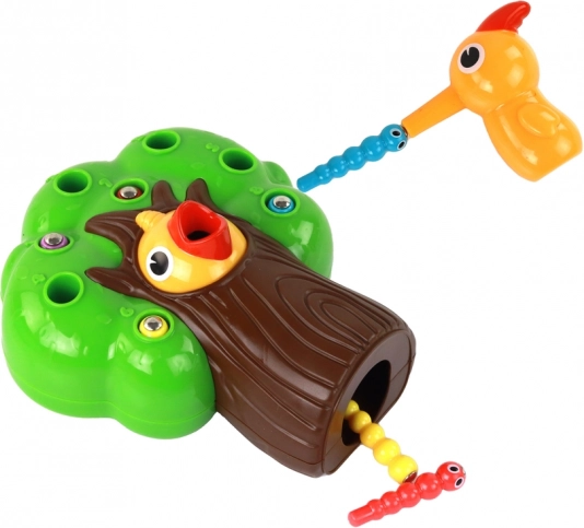 Ce jeu d’adresse magnétique apporte aux enfants le plaisir de la découverte tout en entraînant des compétences clés. Le but est d’extraire, grâce à « la maman oiseau » aimantée, des vers colorés des trous de l’arbre et de les transporter jusqu’au bec de l’oisillon affamé. L’activité développe la précision des mouvements, la coordination œil–main et enseigne la patience ainsi que le raisonnement logique.