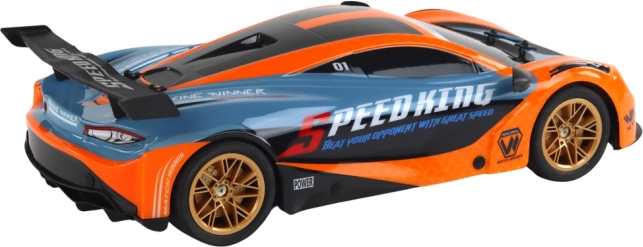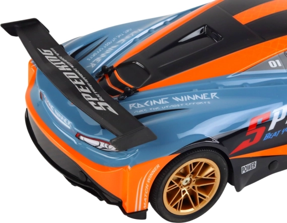 Découvrez le plaisir à plein régime avec cette voiture RC finement conçue à l’échelle 1:10. La finition sport orange et bleue avec jantes dorées et aileron arrière offre un look superbe et d’excellentes performances. Grâce à la fréquence 2,4G, vous bénéficiez d’une portée stable sans interférences, ce qui permet de rouler avec plusieurs voitures en même temps.