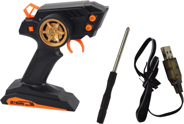 Un émetteur moderne en 2,4G assure une connexion stable sans interférences et permet de rouler avec plusieurs modèles en même temps. La télécommande à gâchette ergonomique tient parfaitement en main.