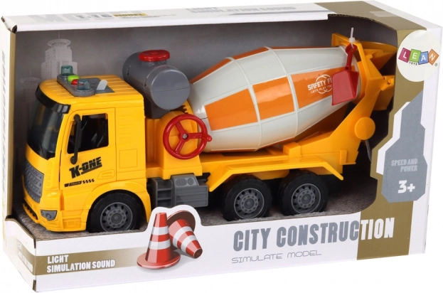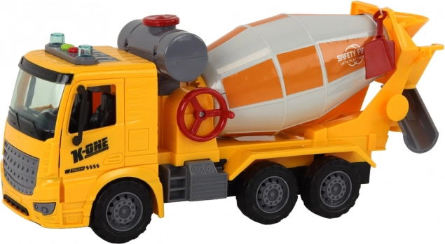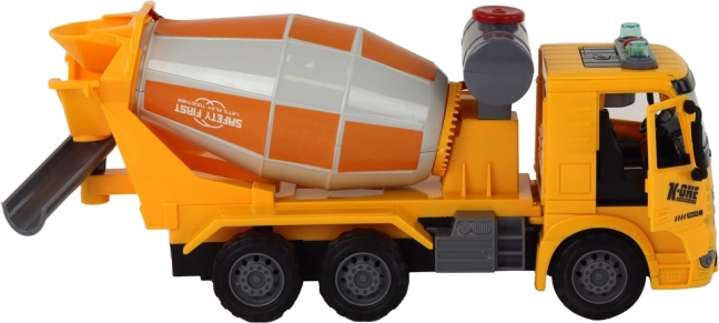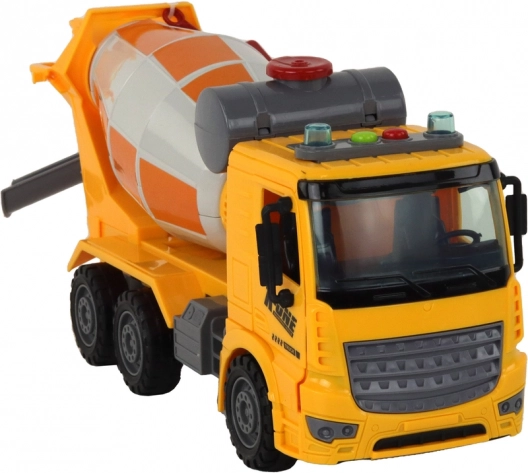 Le véhicule est fabriqué à l’échelle 1:16, ce qui le rend adapté au jeu sur différents terrains. La bétonnière dispose d’une cuve de mélange mobile, ajoutant un élément d’interactivité au jeu. Le camion est équipé d’effets sonores imitant le démarrage du moteur et le bruit de marche arrière, renforçant encore le réalisme.
