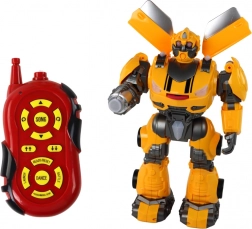Le robot possède des membres articulés, un look « blindé » détaillé et un coloris jaune‑noir qui attire l’œil au premier regard.