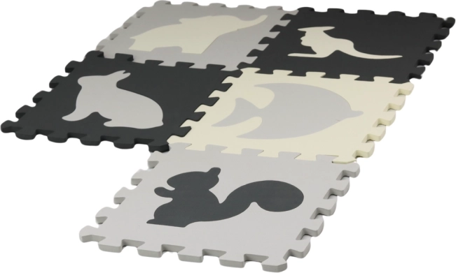Les couleurs contrastées et les formes intéressantes attirent l'attention de l'enfant et stimulent sa vision. La structure rugueuse des puzzles développe également les capacités tactiles de l'enfant. Les grands puzzles en mousse sont faciles à nettoyer et apportent non seulement du plaisir mais soutiennent également le développement de l'enfant à de nombreux niveaux. Les éléments du tapis peuvent être facilement essuyés avec un chiffon humide.
