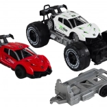 La voiture tout-terrain blanche et la voiture de sport rouge permettent de multiples scénarios de course ou de sauvetage.