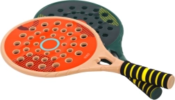Les poignées des raquettes, en noir et jaune contrastés, sont en plastique souple offrant une prise en main confortable et un meilleur confort. Les dimensions de ces raquettes sont de 46 cm x 22 cm x 3 cm, garantissant stabilité et précision de jeu.