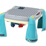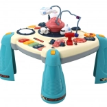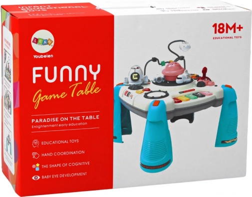 Sur la table, il y a un module avec piano qui apprend aux enfants l'alphabet et les chiffres en anglais. Cela garantit des expériences à la fois amusantes et éducatives. De l'autre côté de la table, ils trouveront différents jouets sensoriels parfaits pour le développement de la motricité fine et de la perception sensorielle.
