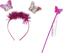 Un serre-tête assorti avec papillons et une baguette scintillante pour créer des moments ludiques et de belles photos. Idéal pour le carnaval ou un anniversaire.