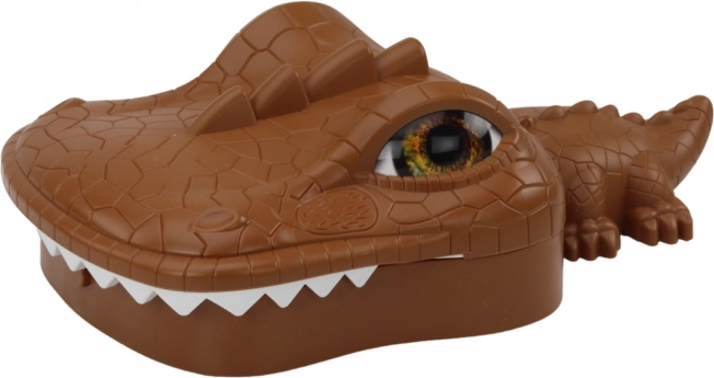Grand plateau en forme de crocodile marron avec gueule ouvrante, éléments mobiles et « prises » colorées pour un amusement sans fin.
