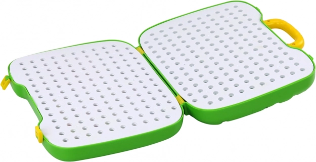 Grâce aux roues dentées, les enfants peuvent expérimenter des mécanismes simples et développer leur pensée technique. Le set est conçu pour soutenir la coordination œil–main, la patience et l’imagination. Le rangement est facile dans les plaques/valise vertes et blanches, légères et résistantes, avec poignée.