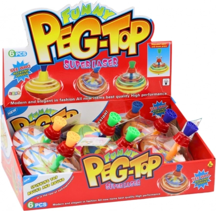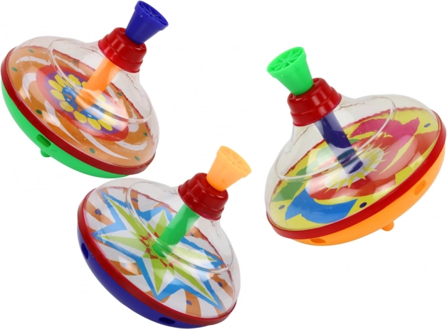 La toupie est conçue pour créer de fascinantes illusions d’optique lorsqu’elle tourne. Sa partie inférieure est solidement fermée, tandis que la partie supérieure est transparente, ce qui permet d’admirer les motifs peints à l’intérieur.
