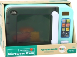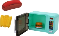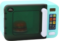 Le four micro-ondes interactif pour enfants, en couleur turquoise, transforme le jeu de cuisinier en une expérience réaliste. Il offre des effets lumineux, un plateau tournant, une porte ouvrante et des programmes de chauffage. Sont inclus des aliments ludiques (hamburger, frites, hot-dog) et des piles pour une utilisation immédiate.