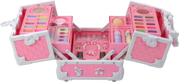 Cette élégante mallette de maquillage séduira les enfants par son design soigné et son riche contenu. À l’ouverture, deux niveaux se déploient, remplis d’accessoires de maquillage colorés et de bijoux, qui favorisent la créativité, la motricité fine et la mise en valeur de soi. Grâce à ses dimensions compactes, les enfants peuvent l’emporter partout avec eux.