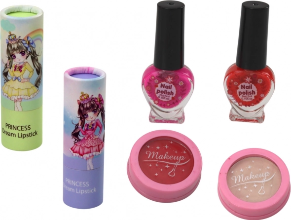 Fards à paupières, poudre, blush, rouges à lèvres, vernis à ongles, lime et autres accessoires – tout en un set pratique.