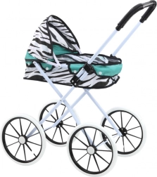 Une poussette pour poupées élégante avec de grandes roues en mousse et une capote pliable pour des promenades réalistes et une manœuvre confortable. Grâce à sa structure pliable, elle se range et se transporte facilement. Le motif zèbre joyeux avec des touches turquoise stimule le jeu créatif et le développement de l’empathie.