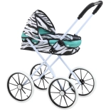 Après le jeu, pliez simplement la poussette : elle ne prend pas de place et se transporte aisément. L’élégante combinaison du motif zèbre et des détails turquoise attire le regard et stimule l’imagination.