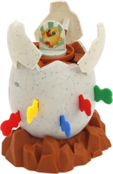 Le jeu interactif Poulet Sautillant transforme n'importe quel moment en une aventure inoubliable. Placez l'œuf sur la base marron fournie, insérez le poulet dans l'œuf et commencez à jouer avec les broches colorées. Lorsque le joueur place une broche au bon endroit, le poulet saute soudainement de l'œuf, garantissant beaucoup de rires.