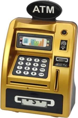 Le distributeur automatique pour enfants est conçu pour combiner l'éducation avec le jeu. Fabriqué en plastique résistant et élégamment fini en doré et noir, il convient parfaitement à toute chambre d'enfant.