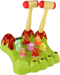 Le jeu de dinosaures pour tuer les taupes vous transporte dans une jungle dense pleine de dinosaures colorés et joueurs ! Le jeu comprend une surface de jeu verte qui simule un environnement préhistorique, et cinq niveaux de difficulté qui apportent des défis pour chacun.