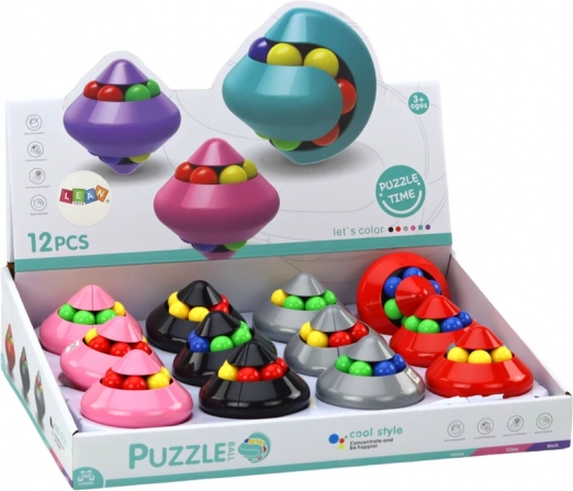 Le jeu se concentre sur la rotation de la petite boule centrale et de déplacer les perles vers le haut, le bas, la gauche et la droite sur le cylindre mobile au centre. La première étape consiste à régler l'axe horizontal central pour qu'il soit aligné avec les autres rainures. Ensuite, une perle de rechange est insérée et la perle colorée souhaitée est déplacée sur l'axe horizontal central.