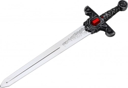 Une épée stylée avec lame argentée et poignée décorée, idéale pour un jeu imaginatif et sûr des petits chevaliers.