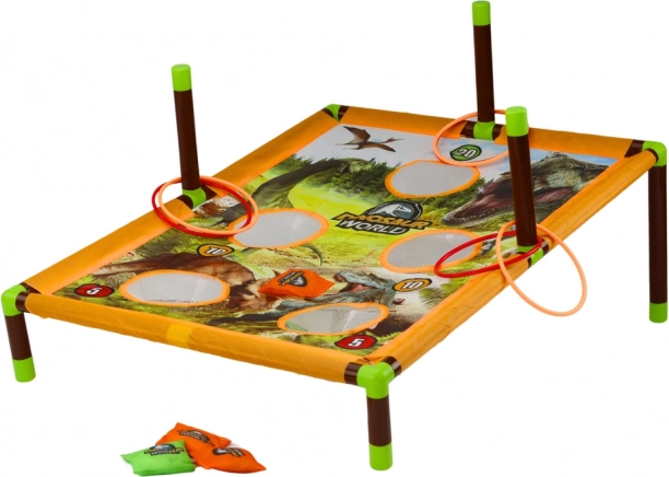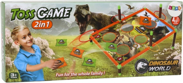 Découvrez un défi dinosaure amusant pour toute la famille. Le cadre stable avec une cible en tissu et des graphismes DINOSAURES marqués dispose d’ouvertures numérotées pour un comptage des points facile. Grâce aux anneaux et aux sachets de lancer, le jeu offre deux manières d’entraîner la visée, l’équilibre et la concentration – idéal pour les fêtes d’enfants comme pour les après-midis au jardin.