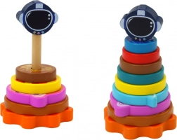 La pyramide empilable en bois sur le thème de l’espace allie jeu et apprentissage. Les enfants trient les anneaux colorés – les « planètes » – par taille, exerçant ainsi la comparaison, l’orientation et la patience. La pièce finale en forme de casque spatial apporte la satisfaction d’une tâche accomplie.