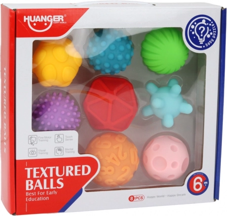 Ballons sensoriels de textures variées, 8 pièces, colorés