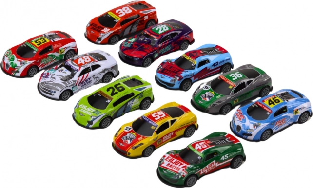 L'ensemble comprend dix petites voitures de diverses couleurs et designs, ajoutant une nouvelle dimension à votre jeu de course.