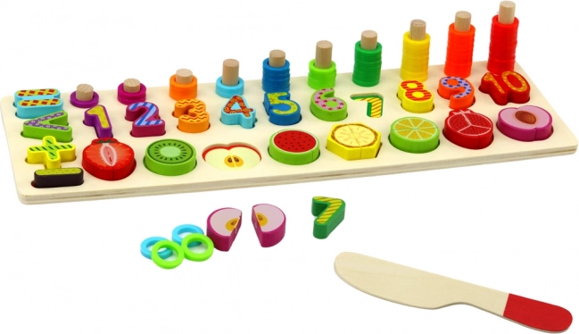 Caractéristiques du produit :- Des emplacements creusés avec des chiffres et des fruits colorés sont parfaits pour apprendre à compter, reconnaître les formes et les couleurs, et développer la coordination visuo-motrice.
