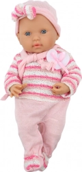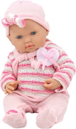 Cette adorable poupée bébé en pull rayé rose avec bonnet et écharpe ravira chaque petit·e soigneur·se. Elle possède des traits réalistes et des bras et jambes articulés, et est fabriquée avec des matériaux sûrs et résistants. Dimensions de la poupée 39 × 18 × 10,5 cm, âge 18+ mois, certifications CE et EN 71.