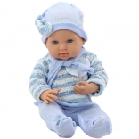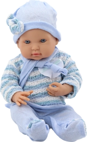 Adorable poupée bébé en petit pull rayé bleu, avec bonnet et écharpe, qui ravira chaque petit·e soignant·e. Elle offre une réalisation réaliste, des bras et jambes articulés et des vêtements tricotés doux en matériaux sûrs. Jouet idéal pour les enfants à partir de 18 mois.