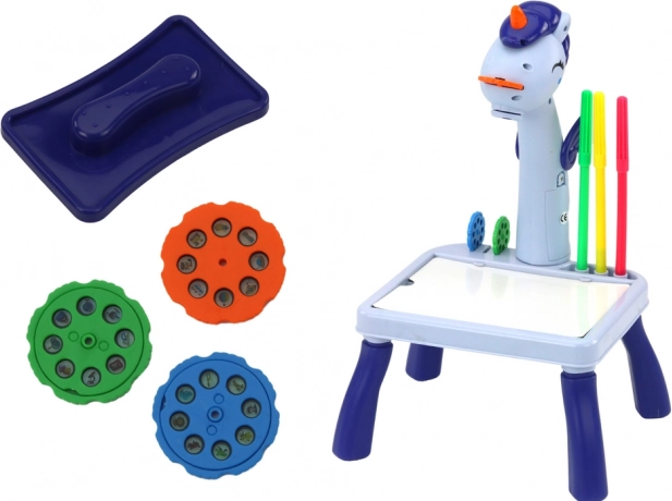 Set ludique et éducatif pour petits artistes : mini projecteur de dessin et table avec puzzle TETRIS en un seul produit. Favorise la créativité, la motricité fine et la pensée logique. Comprend 3 disques interchangeables (24 modèles), 12 feutres de couleur et une éponge effaçable. Cadeau idéal pour les enfants dès 3 ans.
