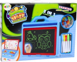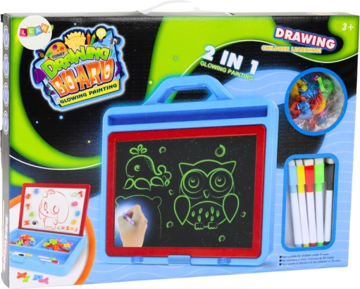 Ce grand tableau de dessin est idéal pour les petits artistes et les préscolaires. Il permet de dessiner avec des feutres magiques effaçables et un stylo lumineux LED spécial qui illumine les dessins dans une pièce assombrie. Les enfants peuvent s’exercer aux premières lettres, aux chiffres et aux calculs simples, de manière ludique.