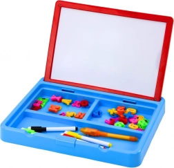 Sous le tableau se trouve un rangement pratique avec 3 compartiments pour tous les accessoires – les marqueurs, les lettres et les chiffres magnétiques sont inclus. La conception double face offre différentes façons de créer et d’apprendre, et grâce à l’effaçage facile, les enfants peuvent recommencer à l’infini.