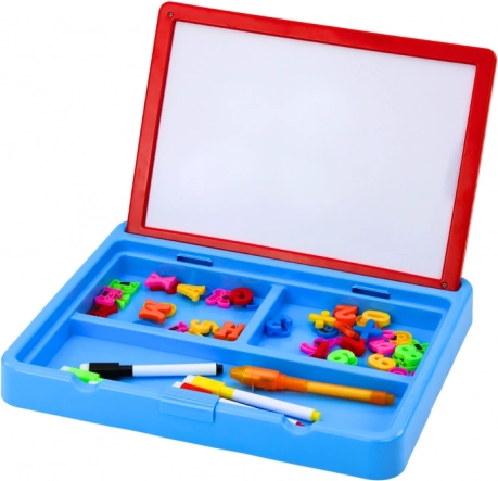 Un jouet amusant et éducatif pour les enfants dès 3 ans : tableau de dessin magnétique 2-en-1 avec feutre LED « lumineux », marqueurs effaçables et lettres et chiffres magnétiques. Grâce aux compartiments de rangement et à la conception double face, il stimule la créativité, l’apprentissage par le jeu et la motricité fine – le tout sans désordre et avec possibilité d’effaçage répété.