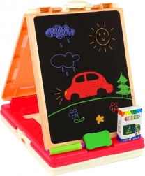 Une face pour les craies, pour le dessin classique, et l’autre effaçable pour les marqueurs colorés – idéal pour la créativité et l’entraînement des compétences scolaires.