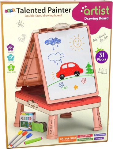 - Tableau pour enfants double face 3-en-1 avec table et jeux de société