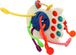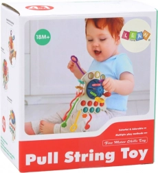Le jouet comprend 6 cordons de couleurs et de textures différentes, qui incitent au jeu tout en développant le sens du toucher et la coordination. Certains cordons sont faciles à tirer, tandis que d’autres demandent plus d’effort, ce qui représente un défi pour les petites mains.